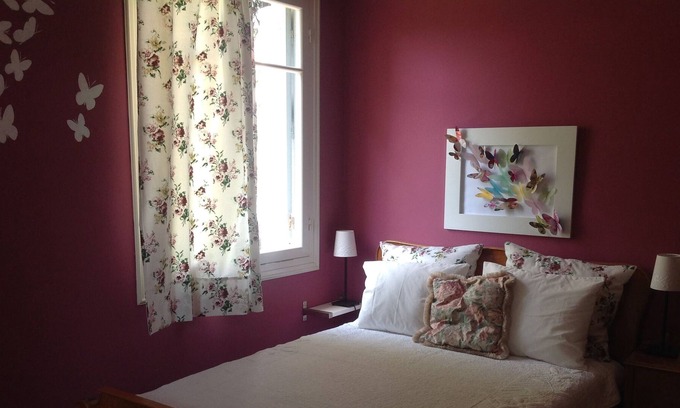 There is the ground floor of a detached house available with garden in a quiet green neighbourhood and within 5 minutes walk from the sea! It has four bedrooms, living room, bathroom, fully equipped kitchen. Sleeps 6 people in a comfortable, bright, cool and cheerful environment. There is wi-fi and garden. Me and my husband live on the first floor of the house and we will be available at all times happy to help our guests with anything that they need and to help them organising their time to visit nearby attractions, all this without the discomfort and losing their daily swimming in the stunning 3 km long beach of Kiato.