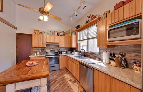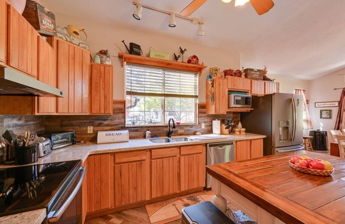 Experience the scenic high country of Arizona when you stay at this 3-bedroom, 2.5-bath, Strawberry vacation rental. Offering a rustic-yet-polished interior with exposed wood beams, modern updates, a top-notch kitchen, a wood-burning stove, an outdoor dining area, and a yard, this pet-friendly cottage has it all! Whether you're here to hike Fossil Springs Trail, explore the Tonto Natural Bridge State Park, or gaze out at the night sky from the patio, you'll love this idyllic Arizona home base!