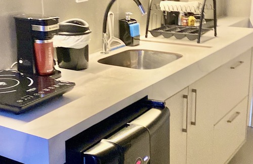 Prepare a home-cooked meal in the kitchenette, complete with a stovetop and a refrigerator, as well as a coffee maker, a microwave, and cookware. Bathroom amenities include a hair dryer, towels, and toilet paper. Other amenities include bed sheets, an ironing board, and air conditioning.