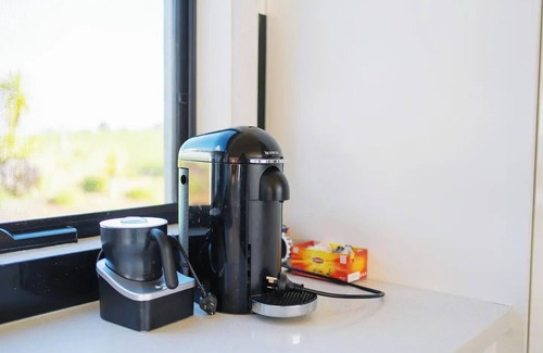 Modern Open-Plan Kitchen: Includes dual islands, a Nespresso coffee machine, an air fryer, and a full set of premium dining utensils.