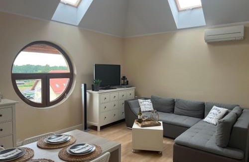 Piaski Bałtyku offers accommodations in Karwia, a 2-minute walk from Karwia Beach and 30 miles from Gdynia Harbour. This apartment features free private parking and an elevator. The apartment has a private beach area and an electric vehicle charging station. This air-conditioned 1-bedroom apartment comes with a dining area, a flat-screen TV, and a fully equipped kitchen with a dishwasher. Towels and bed linen are offered in the apartment. The accommodation is non-smoking. A mini-market is available at the apartment. Guests can relax in the garden at the property. Train Station is 30 miles from the apartment. Gdańsk Lech Wałęsa Airport is 44 miles from the property.