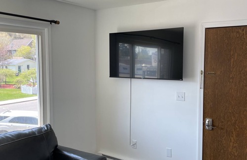 Come stay in One of four apartments in a small building located right at center of Munising. This is a second floor apartment. Walk to bars, restaurants, coffee shops, Dairy queen, auto store, drug store. We have a private off street parking lot with a reserved space for you. The apartment has all the basics you need to feel comfortable, easy to find, safe, and always very clean, pots and pans dishes and silverware,utensils we provide towels and bedding and the basic hand and dish soap, just bring your own bathing soaps. Watch your fav shows on smart tv and YouTubeTV cable channels. Free Wifi and keyless entry so you never get locked out. Multiple fans and a portable a/c in each bedroom to keep you cool. Seating for 4 in kitchen. One futon and one couch in living room give you enough comfy seating. The futon is a full size bed perfect for the kids and bedding is in linen closet for futon as well. Bathroom has full tub with shower that has a pull down handle. Coin operated washers and dryers in lower level laundry room of building.