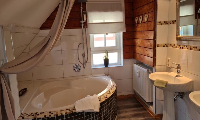 Pilgrims "Elli" charmante Maisonette Bad Sassendorf offers accommodations in Bad Sassendorf, 20 miles from Hamm Central Station and 21 miles from Hamm Market Square. The apartment, set in a building dating from 19th century, features free Wifi and free private parking. The apartment consists of 3 bedrooms, a living room, a fully equipped kitchen with a dishwasher and a coffee machine, and 1 bathroom with a bath and a hair dryer. Towels and bed linen are available in the apartment. The accommodation is non-smoking. Guests at the apartment will be able to enjoy activities in and around Bad Sassendorf, like cycling. Paderborn-Lippstadt Airport is 21 miles from the property.