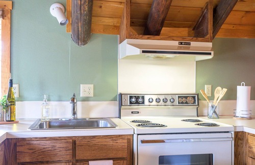 You’ll be greeted by your own private entry which in the spring and summertime, is framed in grape vines. Inside you’ll enjoy large living spaces, a fully equipped kitchen, a cozy reading bunk, and a bathroom with a walk-in shower.