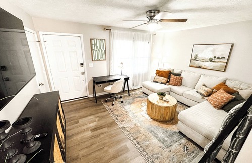 Your cozy getaway awaits in Fayetteville at this quaint apartment. With 2 bedrooms featuring a king and queen bed, a bathroom with a bathtub and hair dryer, and essential amenities like WiFi and AC, guests can relax in this peaceful space. Whether you're exploring the city or simply unwinding indoors, this nice apartment is the perfect home base for your stay. We look forward to welcoming you to our place.