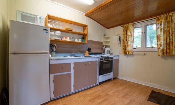 Discover amazing views in this 500 square feet cottage with 2 bedrooms. The inviting living area opens to a stunning lake view. Enjoy breathtaking sunsets and tranquil mornings in this picturesque lakeside haven.