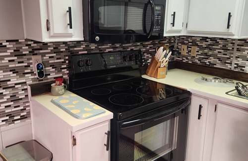 The house also boasts a very well-stocked full kitchen, perfect for preparing meals during your stay. For your comfort, there is portable air conditioning, and for entertainment, there are 2 TVs with streaming services. Coffee lovers will appreciate the two coffee machines available for use. Plus, there is a gas grill on the big porch, perfect for outdoor cooking and dining.