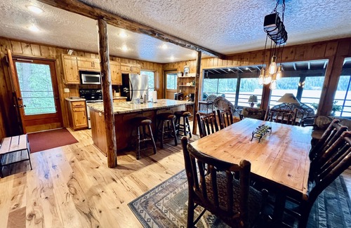Welcome to North Idaho where time slows down and all your worries melt away. Our cabin is meant for relaxation and to get away from the stresses of the world. Enjoy a fire side cocktail on our lower level patio, or watch the sunset while fishing on the dock. We have a covered boat slip so, feel free to bring your own or rent from our local marina. Our cabin is not fussy, we love the rustic, North Idaho wildlife vibes throughout. This is a perfect cozy family getaway.