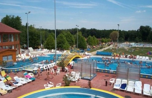 Zalakaros, an 800-year-old town, is famous for its thermal spa and well-maintained parks, offering visitors physical and spiritual rejuvenation. The spa, surrounded by a scenic park, features a variety of pools and wellness services.Thermal Spa & Wellness The indoor spa, open year-round, includes thermal pools of varying temperatures, an open-roof thermal bath, and a sauna. Hydrotherapy treatments such as weight baths, effervescent baths, galvanic baths, and tangentor therapy are available, along with electrotherapy options like stimuli current, ultrasound, and magnetic ring treatments. Guests can also enjoy massage services and both individual and group gymnastics.Experience Bath A covered hall features an experience pool, a children’s pool, and a multipurpose sports pool. Water jet massages, Jacuzzis, water mushrooms, and wild water flow add to the fun. The 400 m² sports pool is open year-round for swimming, water gymnastics, and fitness activities.Children’s Area A dedicated covered pool includes mini-water slides, waterfalls, a tilting bucket, and a water mushroom. A children’s corner with toys, games, and a TV room ensures young visitors have plenty of entertainment.Outdoor Pools & Attractions The open-air section, directly accessible from indoors, features a thermal experience pool with massages, water shoots, a Scottish shower, and a Jacuzzi. A children’s pool includes a water hedgehog, spraying snake, and mini-slide. Waterslides and a wave pool offer excitement, with the "Black Hole" slide and a new slide complex featuring an "Anaconda" slide, two "Kamikaze" slides, and a three-track family slide.Relaxation & Play Areas Sunbathing terraces provide scenic views, while shaded thermal sitting pools offer a peaceful retreat. A well-equipped playground is available for young children.A Destination for All Ages Covering 10 hectares, the spa and park cater to visitors of all ages. Whether seeking relaxation in peaceful pools, adventure on waterslides, or engaging in active sports, Zalakaros offers a complete wellness and entertainment experience for the whole family.