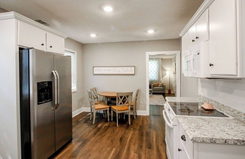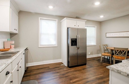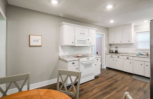 Get ready to relax in this 3-bedroom house in Richmond Hill. With 2 queen beds and 2 twin beds, guests will find the sleeping arrangements comfortable and cozy. This superb property offers amenities like WiFi, a washer and dryer, and new leather furniture for an enjoyable stay. This cottage has a large eat in kitchen complete with a pink Keurig! The pink door cottage will be one to remember.