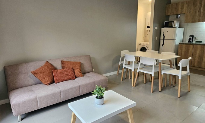 Casa Los Pinos is located just 10 minutes from the center by car, with a capacity for 5 people. The property has 2 bedrooms, one of them with a bunk bed and a pull-out bed, a full bathroom, and a toilet. The living-dining room with kitchen includes a sofa, a coffee table, and a table with 6 chairs.