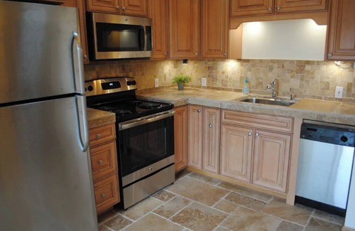 New full-sized refrigerator, full-sized stove with oven, microwave, dishwasher, skylights, vaulted ceilings. New tankless water heater with recirculation for quick warm water availability,