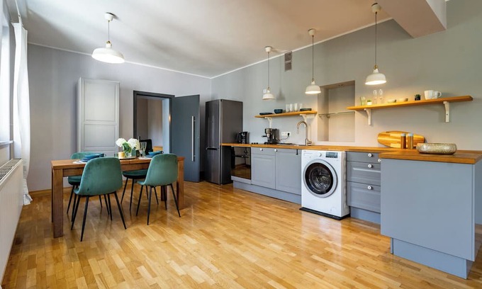 Platinium Spacious Apartment is an extremely spacious and stylishly decorated apartment featuring a living room with a kitchenette, two bedrooms, a bathroom, and a balcony where guests can relax and enjoy their morning coffee or an evening glass of wine. Guests have access to various amenities, including free WiFi, a TV, a washer-dryer, an iron, a hairdryer, a coffee machine, a refrigerator with a freezer, a dishwasher, an oven, and kitchen utensils.