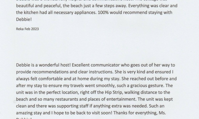 Based on the information reported by the owner or manager, details for the cancellation policy for the Montego Bay cottage are as follows: Cancellation policy Guests are cautioned that the cancellation policy may differ based on seasonality, availability, or current travel restrictions. Guests should also be aware that this policy may be subject to change and should be confirmed prior to booking. More details may be available on this page in the property description. However, early check-in or late check-out can sometimes be negotiated between the guest and the owner or the manager of this property.