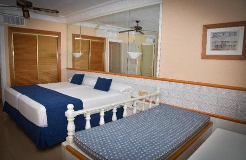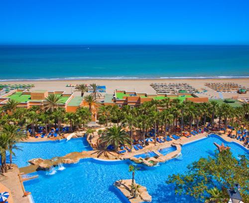 Playacapricho sits by the sandy beach in Roquetas de Mar. It has a swimming pool, free WiFi and impressive sea views. The rooms in the Playacapricho have either a balcony or terrace. They also have air conditioning and heating. A safe is available for a surcharge. The swimming pool has water slides and a hot tub for guests older than 15 years old. There is a sun terrace with free loungers and a roofed swimming pool. The Olympo Beach Club is open during peak season. The Playacapricho’s buffet restaurant offers local and international dishes. It has a show kitchen. Roquetas de Mar has many good beaches and water sports facilities. Tennis and horse riding can be found nearby. Playaserena golf course is just 1312 feet away. One child up to 14 years old can stay for free when sharing a room with one adult in a single and 2 adults in a double.