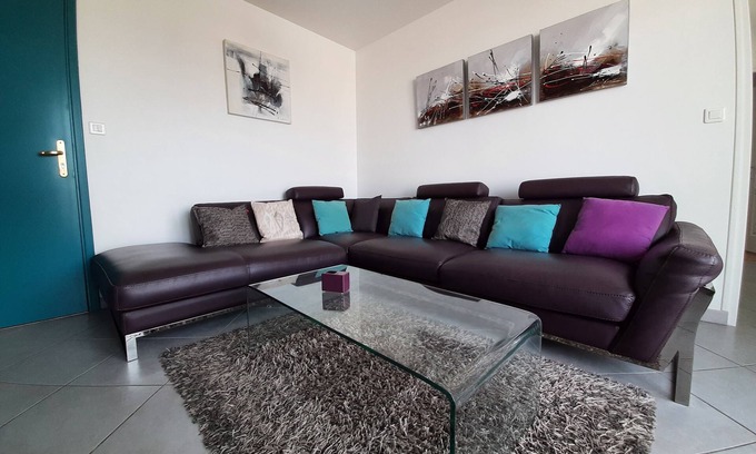 Secure luxury residence with elevator and a private garage included in the residence. With fiber, free wifi, you have a desk at your disposal. bright apartment, living room with a dining area, an integrated equipped kitchen and a corner sofa to relax like at home. You have a large terrace, well exposed, a garden furniture to enjoy until sunset with a dinner at the plancha. The two bedrooms, have access terrace with panoramic views of the city and in the distance on the forest of olonne. Well insulated with roller shutters. close to shops, Port Olona and cinemas, the city center and its pedestrian streets, restaurants of the fishing port, 800 m from the large beach and the seawater pool at 29 °, the casino. This seaside resort is lively with the walk on the embankment, its bike paths, hikes, water activities, guided tours.