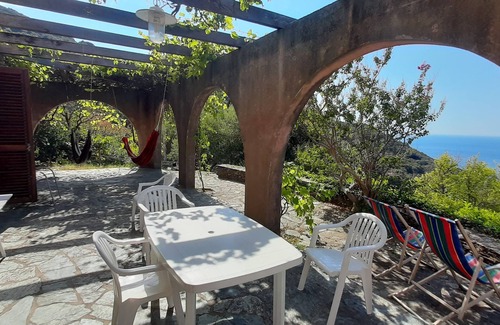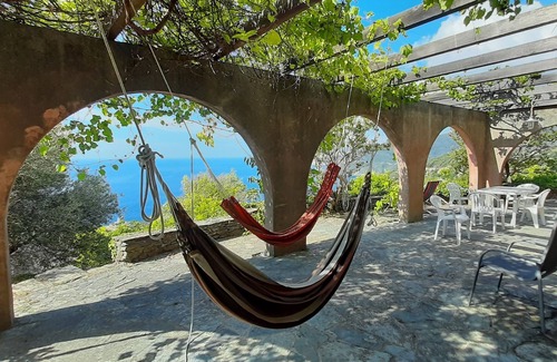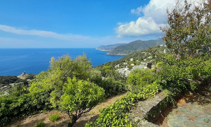 Located in the village, quiet, with parking (2 places), garden, terrace (100m2) with panoramic views of the village the sea and the mountains