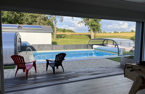 Swimming pool heated from May to the end of September. Swimming pool with swim against the current and electric security shutter.