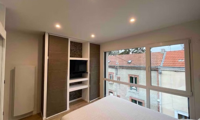 Nestled in Reims, this 1-bedroom, 1-bathroom vacation home brings it all within your reach. Fans of nature and the outdoors will love being 3 minutes by car from Les Hautes Promenades and 7 minutes from Parc Léo Lagrange. You'll easily make the quick 2-minute drive to Reims Arena or the 3-minute drive to Mars Gate.