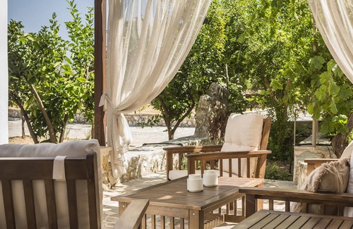 The cottages provide the perfect luxury retreat built in spacious gardens with varied fruit trees (figs, walnut, pomegranate, lemon, oranges and olive), vineyards and flowers. Nestled above the cliffs overlooking the amazing cove of Pessada the cottages are within close proximately to the sea so guests can enjoy a cool breeze through the trees and in the evening can delight in the night sky. The two cottages can be used together for friends and family or rented independently. There is a private entrance and drive to each of the properties; they are situated at 70m apart.