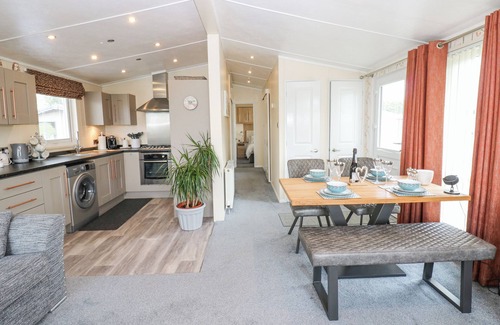 Plot 32, a ground-floor lodge, consists of an open-plan living space including a kitchen with an electric oven, gas hob, microwave, fridge/freezer, washing machine, kettle, toaster, a sitting area with a Smart TV and electric fire, and a dining area with seating for four guests. Sofa bed available to use for an extra person if needed. The bedrooms consist of a double serviced by an en-suite walk-in shower, and a double, z bed available on request. The bathroom has a Jacuzzi style bath and is disabled friendly with aids next to the WC. Outside, there is a private decking overlooking the countryside views with outdoor seating and a hot tub. There is allocated parking available for two cars. This is a pet-free and smoke-free home. WiFi, fuel, power, bed linen and towels are all included in the rent. Within 2.5 miles is the closest shop and pub. Note: This property has a good housekeeping bond of 250GBP. Note: there are steps to the exterior. Please note: Between 12/12/24 and 22/12/24 this property can only accommodate a 7 night stay. Please note: This property only accepts a minimum of 3 nights. Please do contact us if you will not be using the hot tub during your stay as the owner may offer a small discount.