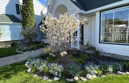 "Plum Retreat" is a private, and cozy-and-yet-spacious portion of an adorable cottage hiding behind an ornate garden gate, and sleeps 2-6 guests over two levels. The property is part of the picturesque "Green Gables" property in the north part of Ephraim, and is within easy walking distance to galleries, shops, mini-golf, breakfast and pizza, and a short drive from Ephraim village and the water. Green Gables itself has the flavor of a romantic bygone Americana era, and boasts beautiful manicured and award-winning gardens and additionally (in the past, and in the future!) another very large enclosed rear garden area (currently under exciting development). The property is suitable for couples or families and at night it's dark and quiet for stargazing. The house oozes feel-good charm, with lots of windows and natural light, architectural details, and plenty of space indoors and out, to play and relax in. Outside there's a fantastic patio lounge area and professional grill to enjoy, and inside a formal fireplace invites you to curl up on the sofa-bed (with an old record playing on the vintage stereo/record player)? Full kitchen, with oven, fridge, dishwasher, microwave, toaster etc. Upstairs there are two very large bedrooms (one with a king bed, the other with two queens), and there's a true queen sofa-bed downstairs. All the bedding is non-allergenic. Wi-fi, a 49" TV with cable channels, Netflix and Amazon Prime in the living room, and a washer and dryer upstairs. The space works well for families, or two small families to share, or just for a couple looking for a romantic or memorable Door County vacation. In response to COVID-19 cleaning and sanitizing will be thoroughly undertaken. Thank you!