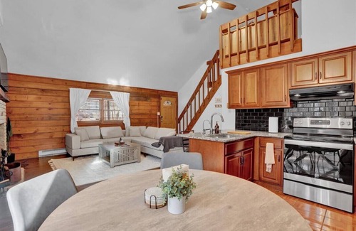2 Bedrooms with a LARGE lounge/sleeping loft (functions as a space to sleep a 5th person, if needed). Conveniently located close to Camelback Mountain Resort, Jack Frost, Big Boulder, as well as numerous hiking trails, shopping + wineries. Kalahari is only 5 minutes away! Or take a short drive to Camelback, Aquatopia, or Great Wolf Lodge water parks.