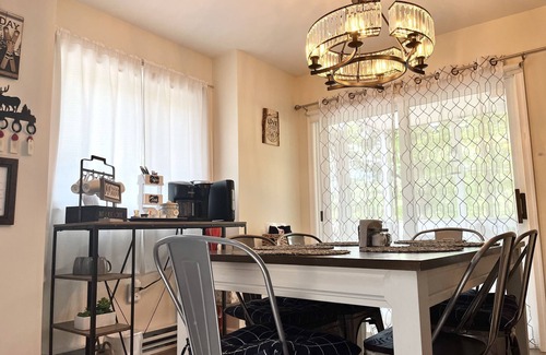 The Pocono Lofthouse is an immaculate 4-bedroom (6 bed) 2-bath getaway home with a 3-season room to enjoy your morning coffee, or end with a good book, a cup of tea or a glass of wine, while watching the stunning view of the ski lift & slope right next door! The Lofthouse features a fully equipped kitchen, washer & dryer, 2-AC’s, dishwasher, brand new cooking essentials & can accommodate up to 8 guests only, with a relaxing loft area and a coffee bistro set for playing a family game. Imagine walking a few steps in the winter season to hop on the amazing ski lift for a fun filled ski adventure, then down the slopes back to the Lofthouse for lunch, enjoying your hot cup of cocoa, or cooking on the new propane BBQ grill on the main level outdoor deck. Stream your favorite music using high speed wireless internet. Charge your electric vehicle with the NEW ChargePoint Level 2 EV charger. The Pocono Lofthouse is centrally located in the natural beauty of the Delaware Water Gap National Recreation area, you can take a short drive to a breathtaking scenic adventure.