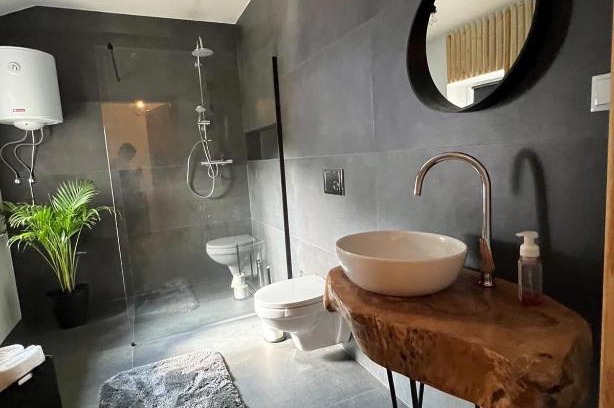 BathroomSlippers, Body soap, Towels, Private bathroom, Toilet paper, Hairdryer, Free toiletries, Bathtub or shower, Walk-in shower, Shampoo, Shower, ToiletMedia & TechnologyTV, Mobile hotspot device, Flat-screen TVGeneralSoundproof, Heating, Private entrance, Key access, Iron, Trash cansKitchenStovetop, Refrigerator, Kitchenware, Microwave, Dishwasher, Kitchenette, Washing machine, Oven, High chair, Wine glasses, Cleaning products, Dining tableLiving AreaSitting area, Fireplace, SofaBedroomLinens, Childrens' cribs, Extra long beds (> 6.5 ft)ViewQuiet street view, Garden view, View, River viewOutdoorsBarbecue, Outdoor dining area, Outdoor furniture, TerraceAccessibilityEntire unit wheelchair accessible, Entire unit located on ground floor, Roll-in showerBuilding CharacteristicsDetachedRoom AmenitiesSocket near the bed, Adapter, Clothes rack, Sofa bedFood & DrinkBottle of water, Wine/Champagne |