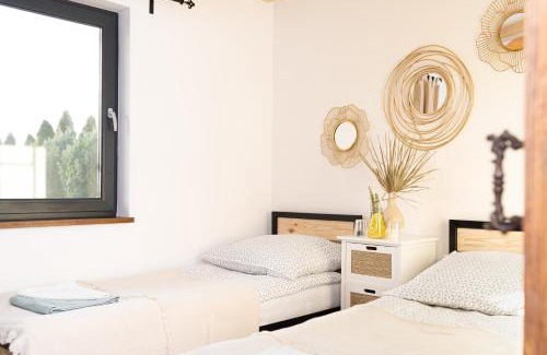 Offering a garden, Pod Mazurskim Niebem boho features accommodations in Piecki. This property offers access to a terrace and free private parking. On clear days, guests can head outside to enjoy the resort village's outdoor fireplace or simply kick back and relax. This 3-bedroom resort village comes with a seating area, a cable flat-screen TV, and a fully equipped kitchen with a dishwasher. Towels and bed linen are featured in the resort village. For added privacy, the accommodation features a private entrance. There is an on-site snack bar, and during warmer months you can make use of the barbecue facilities. You can play darts at the resort village, and the area is popular for skiing and cycling. In addition to a seasonal outdoor pool, Pod Mazurskim Niebem boho also offers outdoor play equipment. Święta Lipka Sanctuary is 24 miles from the accommodation, while Townhall of Mragowo is 12 miles from the property. Olsztyn-Mazury Airport is 27 miles away, and the property offers a paid airport shuttle service.