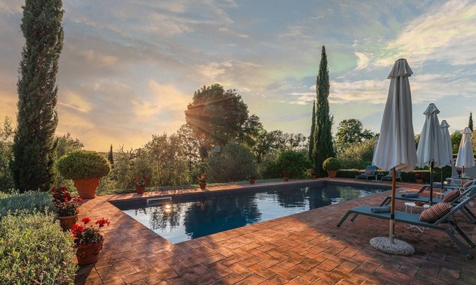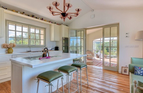 The property’s private setting provides uninterrupted views of rolling vineyards, olive groves, and forests, creating the perfect backdrop for a relaxing retreat.The villa blends classic country cottage charm with touches of English style, offering a perfect mix of timeless elegance and modern comfort.