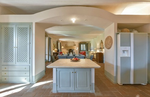 Every inch of this southern Tuscan gem, set in the heart of the Grosseto countryside, says: ‘La Dolce Vita.’ The incredibly attractive stone built house and gardens are immaculately presented making this the perfect luxurious holiday retreat for a large family or group of friends. The experience begins with the classic cypress-tree lined driveway and continues with interiors that wouldn’t look out of place in a style magazine. Guests won’t know whether to admire the far-reaching rural views through plentiful windows and French doors or the light-filled open plan living spaces dressed with original beams, French-style furniture and paintings.