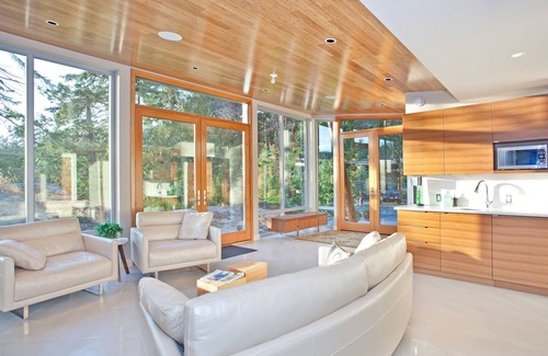 Extensive glazing frames the amazing views and reinforces the sense of intimacy with nature. Gaze out to sea, peer into the rainforest, or observe wildlife up close. Listen to waves break on the shore and eagles chittering in the treetops. Smell the fragrance of cedar seasoned with the tang of salty air.