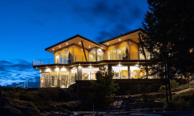 Pointhouse at Sargeant Bay-Dramatic architecture to match stunning oceanfront is located in Halfmoon Bay. Pointhouse at Sargeant Bay-Dramatic architecture to match stunning oceanfront provides accommodation, featuring Fireplace/Heating, Entertainment, Hot Tub, among other amenities. This House features Fireplace/Heating, Entertainment, Hot Tub, to make your stay a comfortable one.