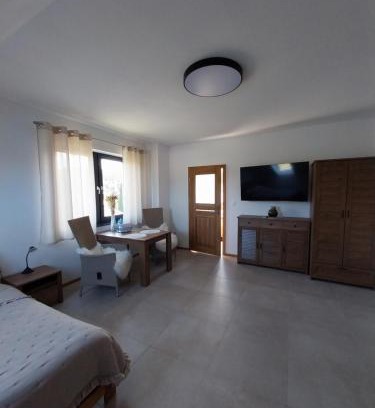 Providing garden views, Pokoje Gościnne, Na Poziomie'' Ustka in Ustka provides accommodations, a garden, and barbecue facilities. The property is around 17 miles from Jaroslawiec Aquapark, 26 miles from Słowiński National Park, and 2.5 miles from Ustka Pier. There's a sun terrace and guests can access free Wifi and free private parking. All units are equipped with a flat-screen TV and a fully equipped kitchen with a dishwasher, a microwave, and kettle. Additional in-room amenities include chocolates or cookies. At the guest house, all units are fitted with bed linen and towels. With an outdoor fireplace and a picnic area, this guest house offers plenty of opportunities to relax. Ustka Lighthouse is 2.7 miles from the guest house, while Ustka Promenade is 2.9 miles away. Gdańsk Lech Wałęsa Airport is 84 miles from the property.