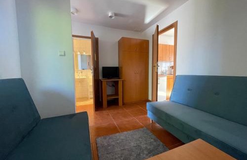 BathroomToilet, Shower, Towels, Hairdryer, Body soap, Toilet paper, Private bathroom, Bathtub or showerGeneralTrash cans, Carpeted, Heating, Private entrance, IronKitchenElectric kettle, Stovetop, Refrigerator, Kitchenware, Cleaning products, High chair, Kitchenette, Dining table, Wine glassesOutdoorsTerrace, Outdoor dining area, Balcony, Outdoor furnitureMedia & TechnologyFlat-screen TVLiving AreaDining areaBedroomChildrens' cribs, Linens, Wardrobe or closetAccessibilityEntire unit located on ground floor, Roll-in showerRoom AmenitiesSofa bed, Clothes rack, Drying rack for clothing, Socket near the bed |