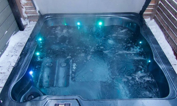 The Igloo features a double bed upstairs and a pull-out sofa bed for two downstairs. Total of 4 people. There is a stunning sauna and bathroom with a washing machine. The igloo is well-equipped with high-quality appliances. The private hot tub takes your vacation to a new level, offering unforgettable moments.