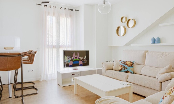 This property is located in a characteristic building called Casa de Colores, in the heart of La Malagueta. The project, executed by the Santos-Rein Galera brothers' architecture studio, houses several apartments designed with elegance and sobriety. On its façade each apartment is represented by a color and the characters appearing on the windows are drawn by the famous Andrés Mérida, a well-known artist from Malaga.It is a fully functional apartment, quiet and with lots of natural light. Its open-plan layout leads to a spacious kitchen and a spacious living-dining area. Like the entire building, this apartment has all the necessary utilities, appliances and offers the comfort to make you feel at home.La Malagueta, considered one of the best residential areas of the city, has quick access to unique spaces for walking and disconnecting such as the Paseo Marítimo, Muelle Uno or the Paseo del Parque. Also it is only a few steps away from tourist attractions such as the Pompidou Museum, Picasso Museum or La Alcazaba. As it is one of the best areas of the capital, you can find exclusive restaurants, cafes, supermarkets, shops and local shops very close to the house.