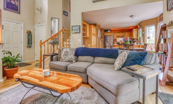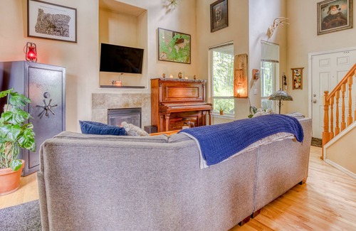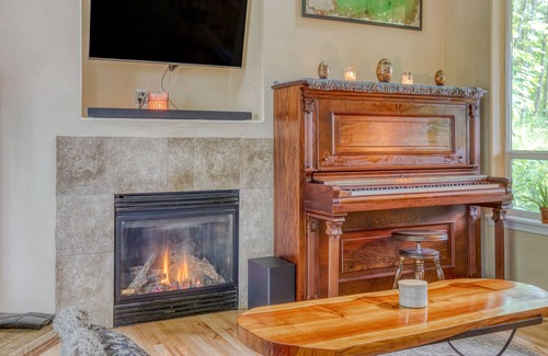 Escape the urban hustle and bustle for a cozy Clackamas holiday at Duck Crossing by Gather, an elegant and abundant 3 Bedroom 2.5 Bathroom home that sleeps up to 8 guests in the tranquility of the lush Oregon forest. With 1.5 acres of land and a long driveway leading up to the home, you can enjoy the peaceful and private nature of the great Pacific Northwest while indulging in the many amenities offered at Duck Crossing, with charm and character in each room.