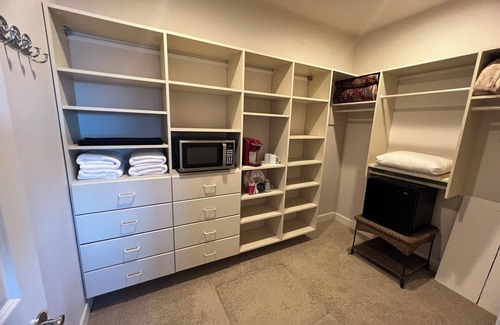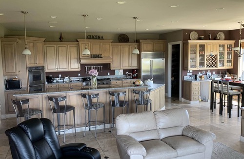 The Chateau sits on 30 private acres 600 feet above the City of Selah, with a 360 degree viewof the Valley plus Mt. Adams and Mt. Rainier. Relax by the pool or on the covered private patio, gaze across the orchards and vineyards as the sunsets. Bring your camera to take pictures of the breath taking scenery and sunsets. Then take a walk around the pond or hike the local trails, all this... only minutes from Town. Each Suite has its own private bath, walk in closet and picture window to take in the sweeping views, allowing just 2 Guests per suite. Each suite has a Smart TV, microwave, coffee pot, herbal teas, throw blanket and mini-fridge. There is a Dining-Room (Shared), Kitchen (Shared), Living room (Shared), Theater Room (Shared), Patio (Shared) 1 Pool (Shared) Wi-Fi. We have a full kitchen plus 3 outdoor BBQ if you would like to stay in to dine at the Chateau.