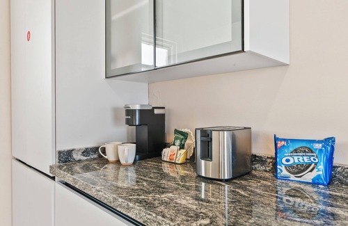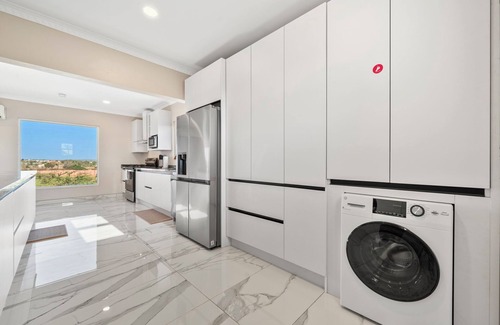 Imagine stepping through the front door and being drawn upward along an elegant staircase into a stylish, open-concept haven. On the second floor lies the main residence, where light spills into an expansive living area that flows seamlessly into a modern kitchen equipped with high-end appliances, a sleek breakfast bar, and a dining space made for laughter and late-night conversations. From the living room, sliding doors open onto a large balcony boasting panoramic views, plush lounge seating, and the kind of relaxing ambiance that invites long, leisurely mornings or sunset cocktails.