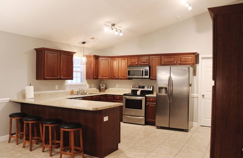 We have set the stage for your family to have a peaceful getaway in our beautiful, cozy home! A modern vibe with a warm, country feel. Sleeps 11. This sprawling, open floor plan has 4 bedrooms, large livingroom, large kitchen with dining area, 2 full baths, laundry room, screen porch, outdoor hot tub, and updated game room in the garage. Master bath has large, spacious jetted tub and a stand up shower. Pool opens April 1st. POOL IS NOT HEATED. Closes September 30