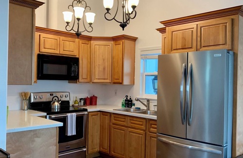 Our guest house is private and peaceful and can comfortably sleep up to four people. It includes one bedroom with a queen size bed, a queen size convertible sofa in the living room, a full bathroom, and full kitchen with everything you should need. Off-street parking is open to our guests. Of note, although we are close to town, the mountains block most cell phone reception. But don’t worry, once you are here, there is WiFi throughout the property.