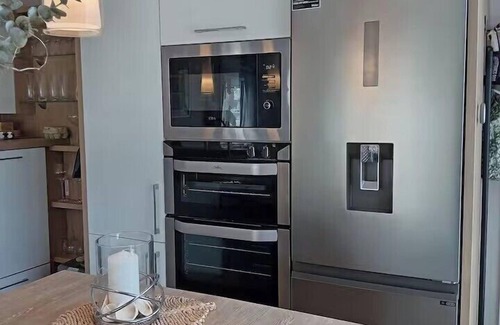 The kitchen has a fridge, freezer a hob, an oven, a toaster, a kettle, a LOR coffee machjne, a dishwasher and a microwave.
