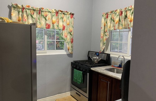 Close to downtown Kingston, highways, beaches, shopping and restaurants. Approx. 45 minutes from Normam Manley Int’l airport. Perfect for the business or leisure traveler. Fully equipped kitchen, A/C, WiFi and washer dryer. Second floor accommodation with balcony.