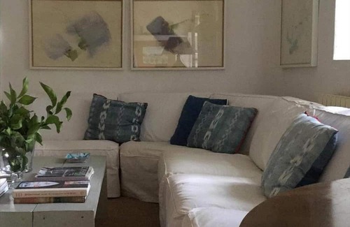 Added to the indoor comforts, are what one most desires in a Mediterranean Holiday, and that is comfortable outdoor living. Under a wisteria-covered pergola there is plenty of casual outdoor seating with upholstered cushions and pillows, and not one but two dining tables and chairs to seat 14. If you are not looking for shade, there is a well furnished terrace, too, surrounded by cyprus, lavender and rosemary and at the end of the garden, a refreshing pool. The house comes with 12 hours of maid service per week. A cook is possible on request.