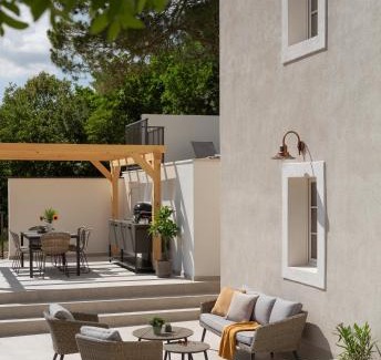 BathroomShower, Bathtub or shower, Toilet paper, Shared toilet, Private bathroom, ToiletMedia & TechnologyStreaming service (like Netflix), TV, Flat-screen TVGeneralHeating, Hardwood or parquet floors, Air conditioning, Trash cans, Iron, Private entranceKitchenCoffee machine, Microwave, Cleaning products, Dining table, Washing machine, Refrigerator, Kitchenware, Toaster, Wine glasses, Oven, Dishwasher, Kitchen, Dryer, KitchenetteOutdoorsOutdoor furniture, Balcony, Outdoor dining area, Patio, Private pool, Barbecue, TerraceLiving AreaSofa, Sitting area, Dining areaViewView, Sea view, Garden viewBedroomWardrobe or closet, Childrens' cribsAccessibilityUpper floors accessible by stairs onlyBuilding CharacteristicsDetachedRoom AmenitiesClothes rack, Hypoallergenic pillow, Socket near the bed, Sofa bed, Drying rack for clothingPool and SpaPool with a view |