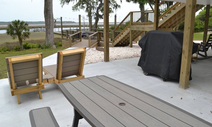 This is a 2 BR 2 Bath unit downstairs in a multi-Unit Home with one of the BEST views on the GA Coast overlooking the Medway River. Walk a few steps to the Sunbury Crab Company Restaurant next door for great seafood and steaks. 35 min south of Historic Downtown Savannah. Within a 75 min drive to beaches of St Simons Island, Jekyll Island and Tybee Island.