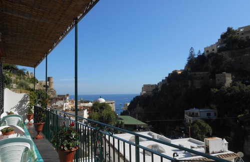 The view from the terrace is wonderful: the colorful houses perched on the rock, with the green outline, the view of the Sea, to the rainbow colors of the clothes on display in tailoring boutique.