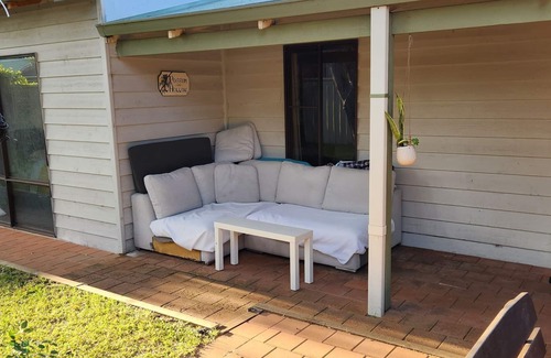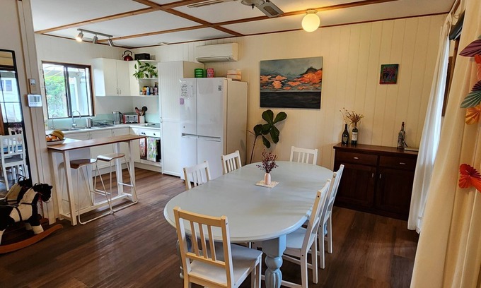 Inside, enjoy a thoughtfully designed open-plan kitchen and dining area, along with a cozy lounge ideal for relaxing after a day of exploring. The combined laundry and bathroom add extra convenience, while the well-equipped kitchen provides everything you need to prepare delicious meals. Outside, the private outdoor dining area and lush lawn are perfect for morning coffees or alfresco meals. You’ll also appreciate the warm outdoor shower, ideal for rinsing off after a beach day.